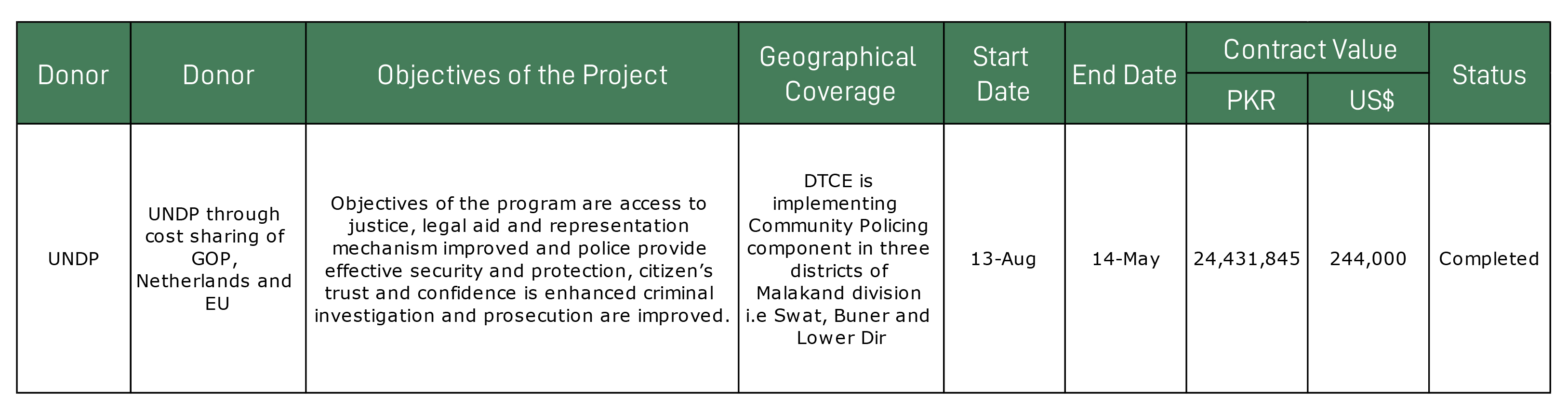 United Nation Development Program (UNDP) through Strengthening Rule of Malakand