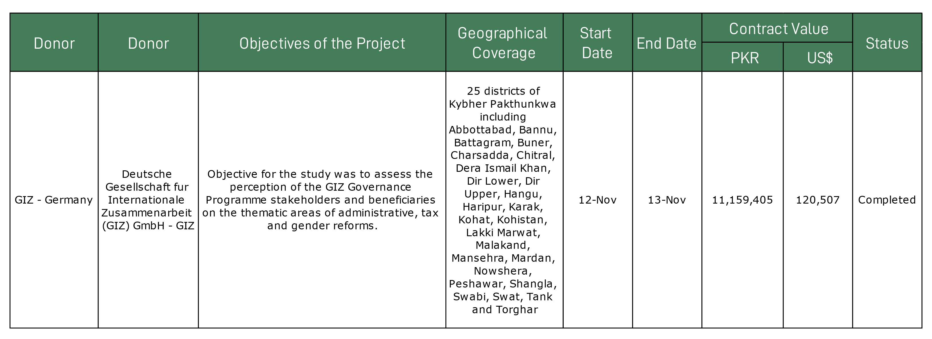 Lakki Marwat, Malakand, Mansehra, Mardan, Nowshera, Peshawar, Shangla, Swabi, Swat, Tank and Torghar.
